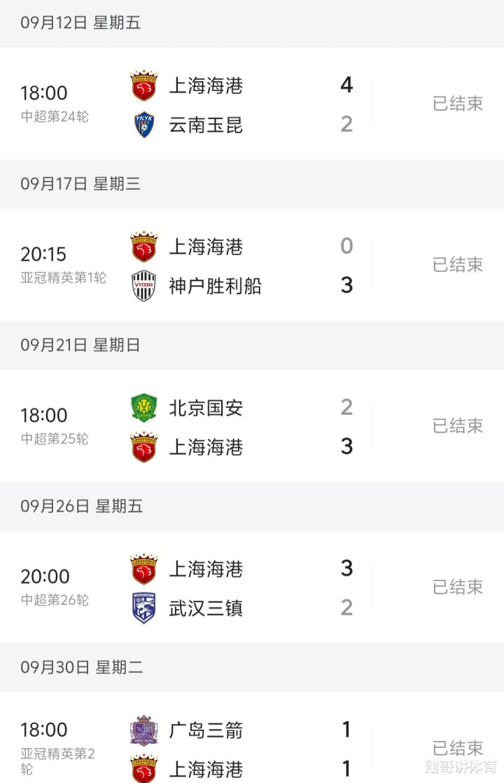北京时间10月2日,当上海海港在亚洲精英赛的舞台上面对强大的对手广岛三箭,出人意料的在客场战平对手拿到一分后,上海海港队也用这场堪称经典的比赛,给球队9月份的赛程画上了一个完美的句号,9月份的上海海港有多强,从球队联赛三连胜,成功的完成逆袭排名中超第一,有望拿到中超三连冠的情况就能看出,越是到了关键的时候,海港队就会变得越强。